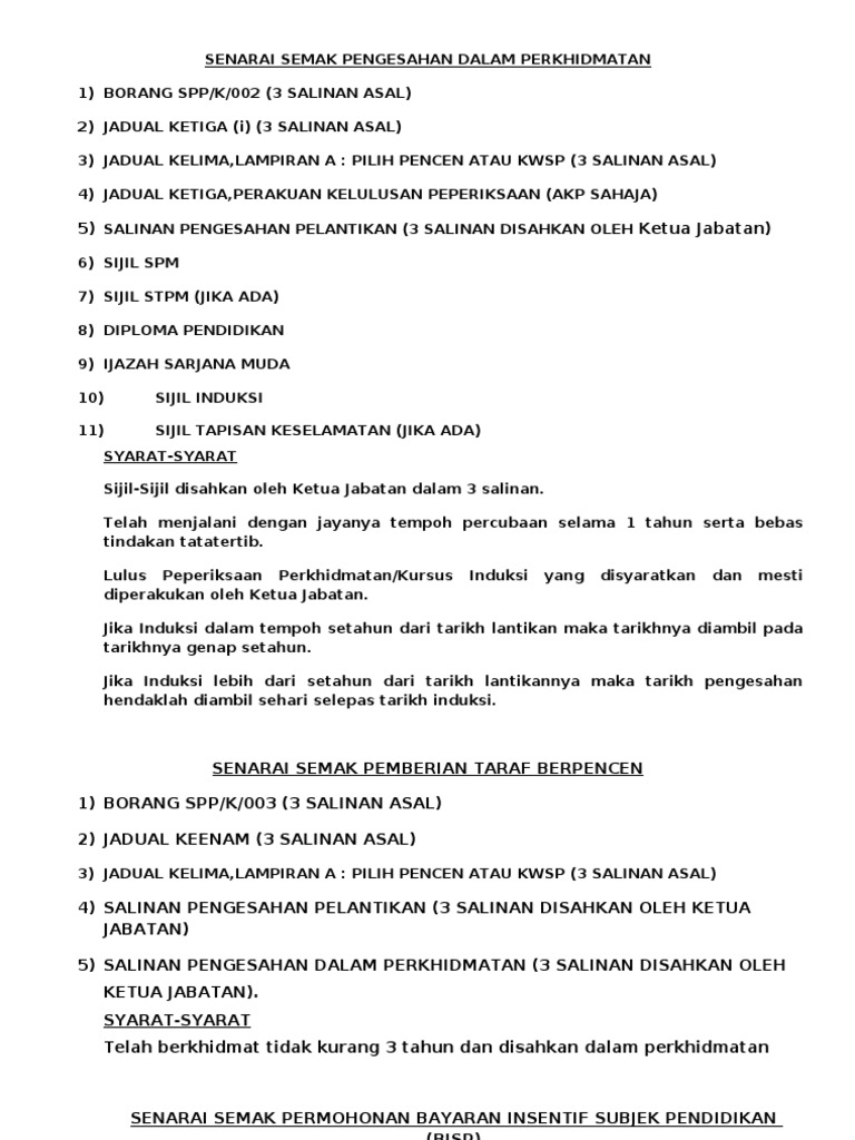 Senarai Semak Penghantaran Dokumen from imgv2-2-f.scribdassets.com Melibatkan diri dalam perkhidmatan profesional bimbingan dan kaunseling disamping menyokong pembelajaran professional rakan sekerja. Mengikut subseksyen 6a(1) akta pencen 1980 (peraturan 37). Berikut untuk tindakan tuan selanjutnya : Semoga anda mendapat keputusan terbaik dalam peperiksaan perkhidmatan awam. Opsyen bagi skim kwsp (jadual kelima). Hebahan jadual pembayaran pencen tahun 2021. Tidakkah kalian tahu, pasangan yang dikahwini dalam perkhidmatan boleh layak pencen terbitan. Kehadapan semua pesara dan penerima pencen terbitan.
